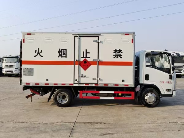 | 貨箱配置 | 廂體為雙層金屬骨架結(jié)構(gòu),外板采用冷軋鋼板,中間填充阻燃泡沫,內(nèi)飾為鋁板。底板為平板上鋪防靜電膠皮。廂內(nèi)兩側(cè)加裝固定貨物臥環(huán),門框帶防盜報警器,頂部帶煙霧報警器,廂體右側(cè)選裝側(cè)門,隨車配2個滅火器,危險標(biāo)志牌,防火帽,危險品三角頂燈。(選裝瓦楞板貨箱) (尾部可選裝液壓升降尾板) | ||