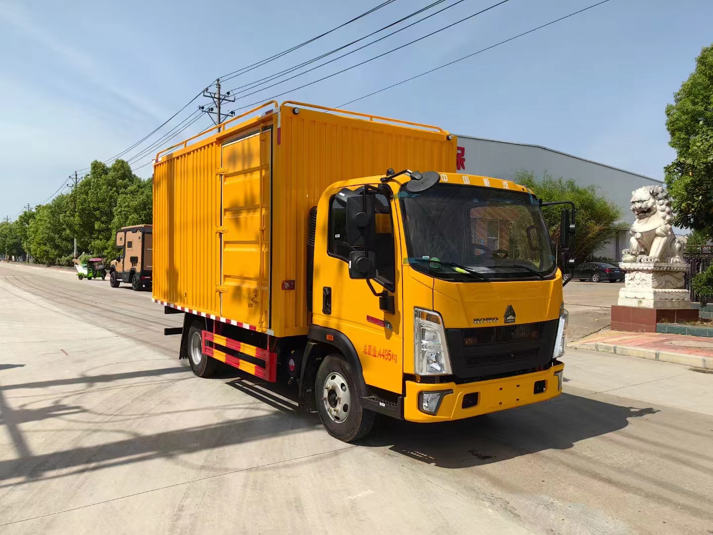 | 底盤配置 | 采用重汽豪沃單排駕駛室,維柴130/140馬力國六發動機,萬里揚5檔變速箱,7.00R16鋼絲胎,5T后橋,3280軸距,電動玻璃門窗,原廠空調,ASR防側滑,ABS防爆死系統。 | ||