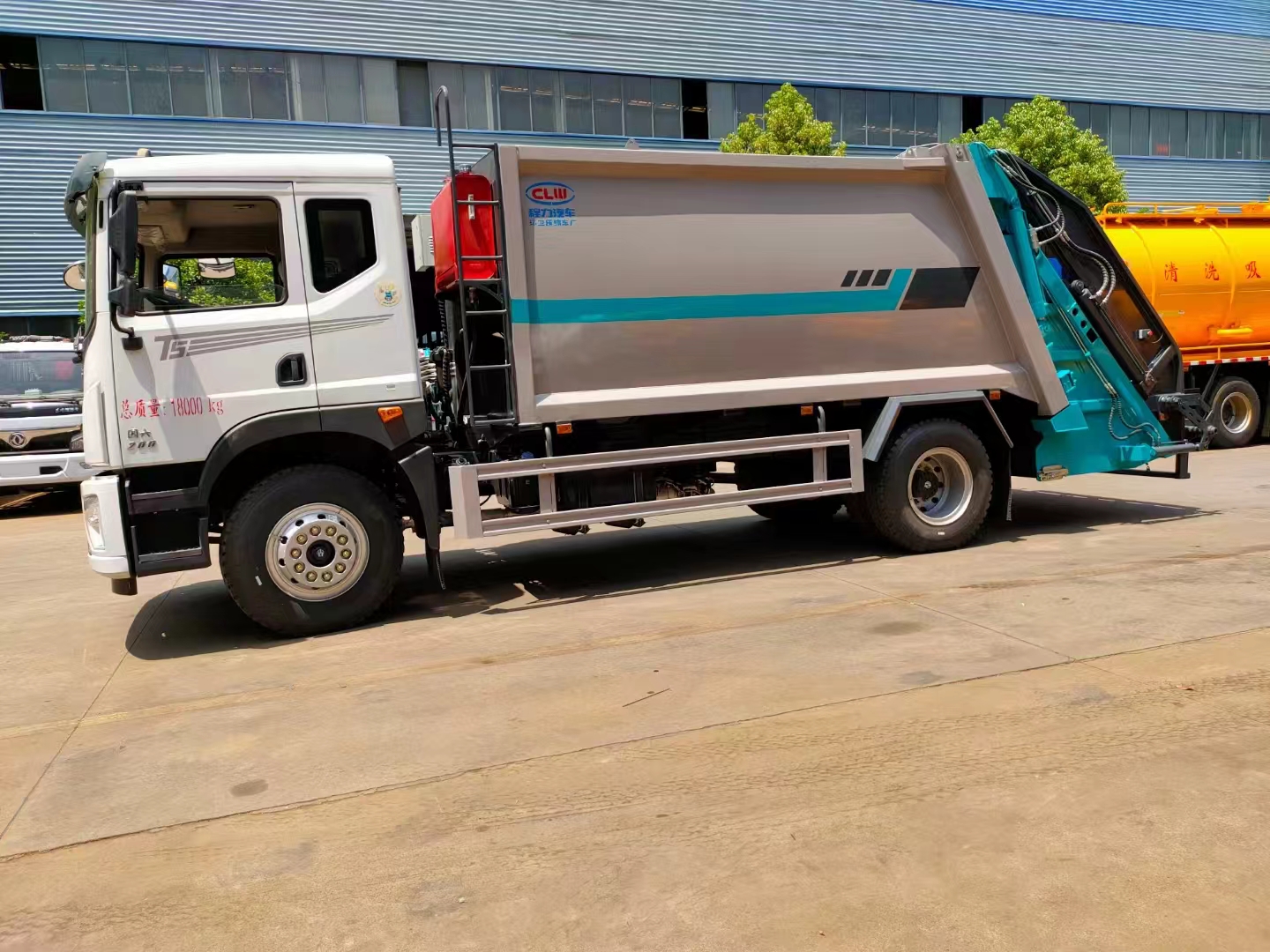 | 上裝配置 | 箱體容積14立方,采用邊四底五高強板制作,填裝器外置滑板油缸結構,機器人自動焊,電泳工藝涂裝,威森博樂多路閥,皖液油泵,填裝器外置滑板油缸結構,尾部翻轉結構可掛120/240L垃圾桶,選裝全密封斗/三角斗。 | ||