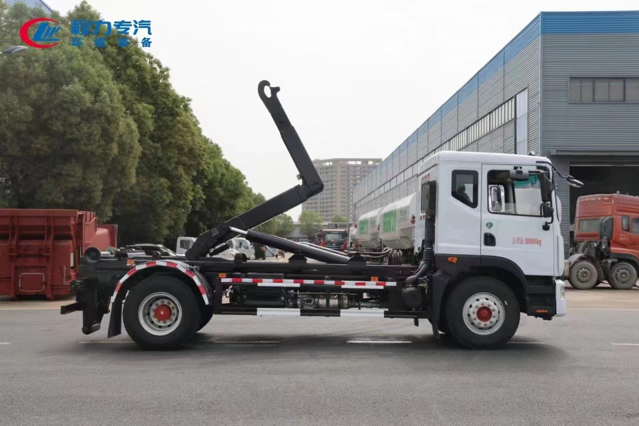 | 上裝配置 | 內置安全泄壓閥(獨有技術),配套10-16方勾臂垃圾箱或移動站,主勾臂由高強度板材制作,雙油缸控制,伸縮式主臂,加強型上裝結構,液壓支腿,橫向鎖緊,品牌多路閥,液壓油泵,標配室內外操作(帶遙控),防誤操作,帶平衡閥,液壓鎖。 | ||