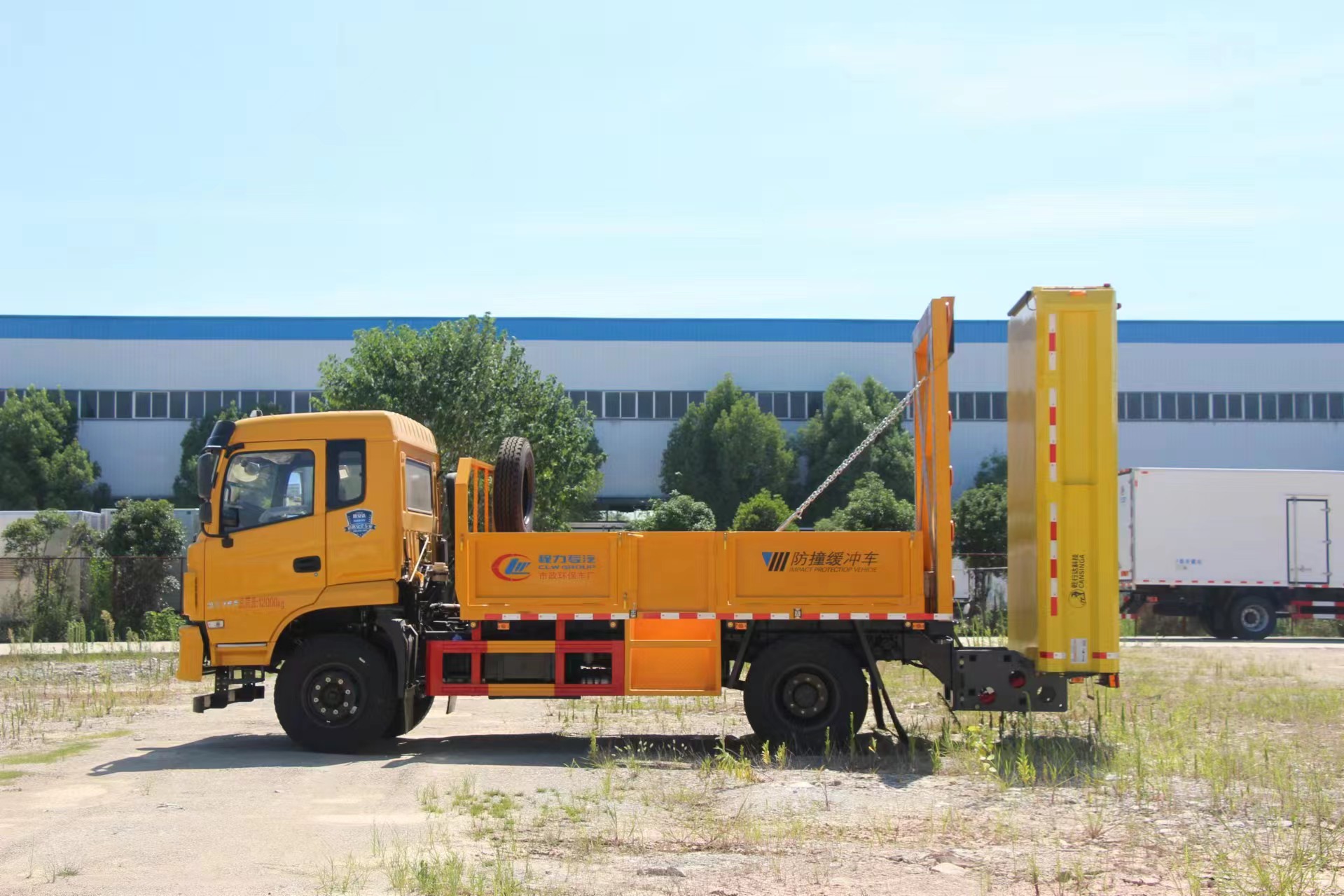 | 上裝配置 | 采用Q235國標(biāo)邊3mm底板花紋板4mm厚,箱體后部防撞緩沖模塊包采用國際知名技術(shù)產(chǎn)品100E防撞緩 沖模塊,防撞緩沖吸能模塊主要由車載防撞緩沖墊和導(dǎo)向標(biāo)志架組成,充當(dāng)施工作業(yè)車輛后方的緩沖衛(wèi)士。 如若發(fā)生追尾事故,能夠在肇事車輛和前方施工作業(yè)區(qū)域之間構(gòu)建一個緩沖區(qū)域,通過機具結(jié)構(gòu)變形吸收撞 擊的能量,最大限度地降低被保護(hù)人員及設(shè)備遭到碰撞的幾率。高性能液壓系統(tǒng),可實現(xiàn)快速舉升和落下操 作,方便設(shè)備運輸轉(zhuǎn)場,一鍵啟動功能,舉升和落下防撞裝置,當(dāng)防撞裝置未完全落下到工作位置或舉升到 垂直運輸位置時,會有自動警告音提示。 | ||