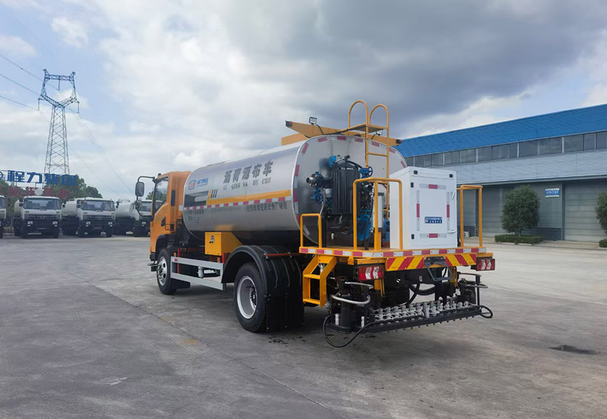 1,僅采用軸距3800mm;2、該車廣泛應用于修筑高等級公路瀝青路面灑布作業,主要專用裝置瀝青罐體,瀝青噴灑系統,罐體總容量:7.52立方米,有效容積:7.17立方米,罐體外形尺寸(長×寬×高)(mm):3600×2100×1550,介質:液態瀝青,密度:900千克/立方米;罐體保溫層厚度為50mm;3、側防護材料采用鋁合金,螺栓連接;后防護由專用裝置代替,下邊緣離地高400mm;4、ABS系統生產廠家:西安正昌電子股份有限公司,型號:ZQFB-V;后部安裝工作燈,僅在夜間駐車狀態下起照明作用,行駛過程中不可點亮。隨底盤選裝駕駛室;選裝駕駛室前擋風玻璃處增加攝像頭布置外觀。