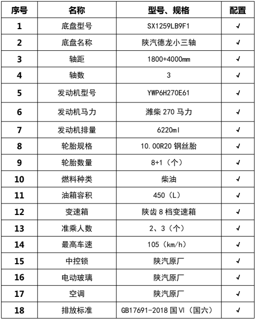 1,僅采用軸距(mm): 1800+4000和1950+4450; 2、該車廣泛應用于修筑高等級公路瀝青路面灑布作業,主要專用裝置瀝青罐體,瀝青噴灑系統,罐體總容量:14.67立方米, 有效容積:14.0立方米,罐體外形尺寸(長×長軸×短軸)(mm):5400×2450×1850,介質:液態瀝青,密度:900千克/立方米;罐體保溫層厚度為50mm;3、側防護材料采用Q235,焊接連接;后防護由專用裝置代替,下邊緣離地高350mm;4、ABS系統生產廠家:西安正昌電子股份有限公司,型號:ZQFB-V.選裝限速裝置,限速89km/h,隨底盤選裝駕駛室,后部照明燈僅在駐車狀態下使用,起夜間照明作用,行駛過程中不可點亮。